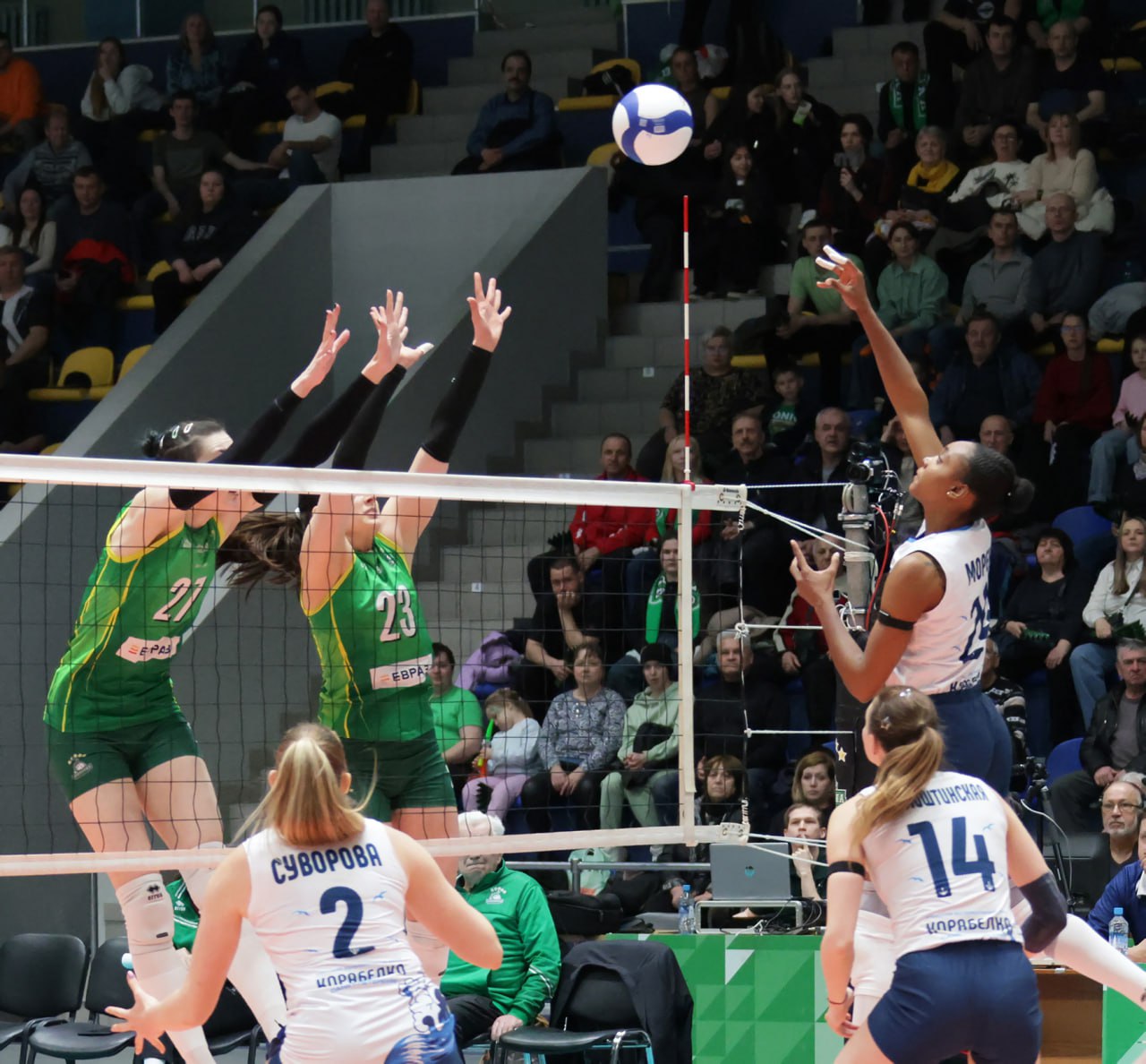 Волейболистки с берегов Невы долго лидировали в первом сете, но все же уступили – 25:27. Второй выиграли – 26:24. После этого хозяйки площадки перехватили инициативу и уверенно довели дело до победы в матче – 25:19 и 25:12.
