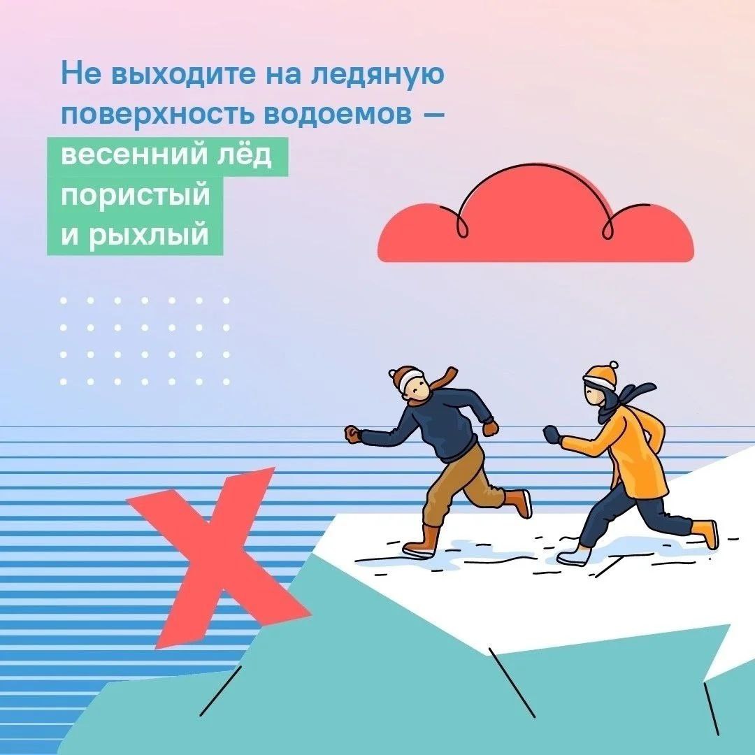 Тонкий лёд!. Напоминаем, что весенний лёд, на первый взгляд, хоть и выглядит крепким… Но проверять его на прочность не советуем