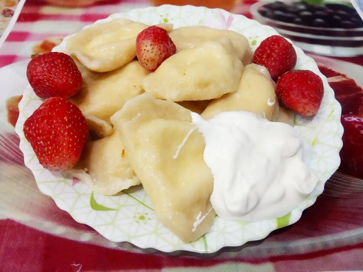 Подавайте вареники со сметаной, а для изысканности можно добавить свежие ягоды. Такой простой, но яркий десерт украсит любое семейное застолье. Приятного аппетита!