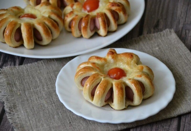 Сосиски, запеченные в слоеном тесте, — это лакомство, которое прекрасно подойдет как для семейного ужина, так и для праздников. Этот простой и быстрый рецепт радует не только вкусом, но и оригинальным оформлением продукции в виде «ромашки». Воспользуйтесь нашим рецептом и удивите своих близких!