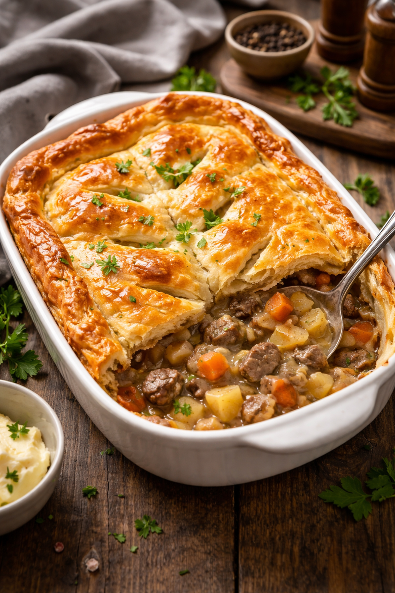 Готовый пирог с мясом становится настоящим угощением, сочетая нежное мясо и хрустящее тесто. Это блюдо прекрасно подходит как для семейного ужина, так и для праздничного стола.