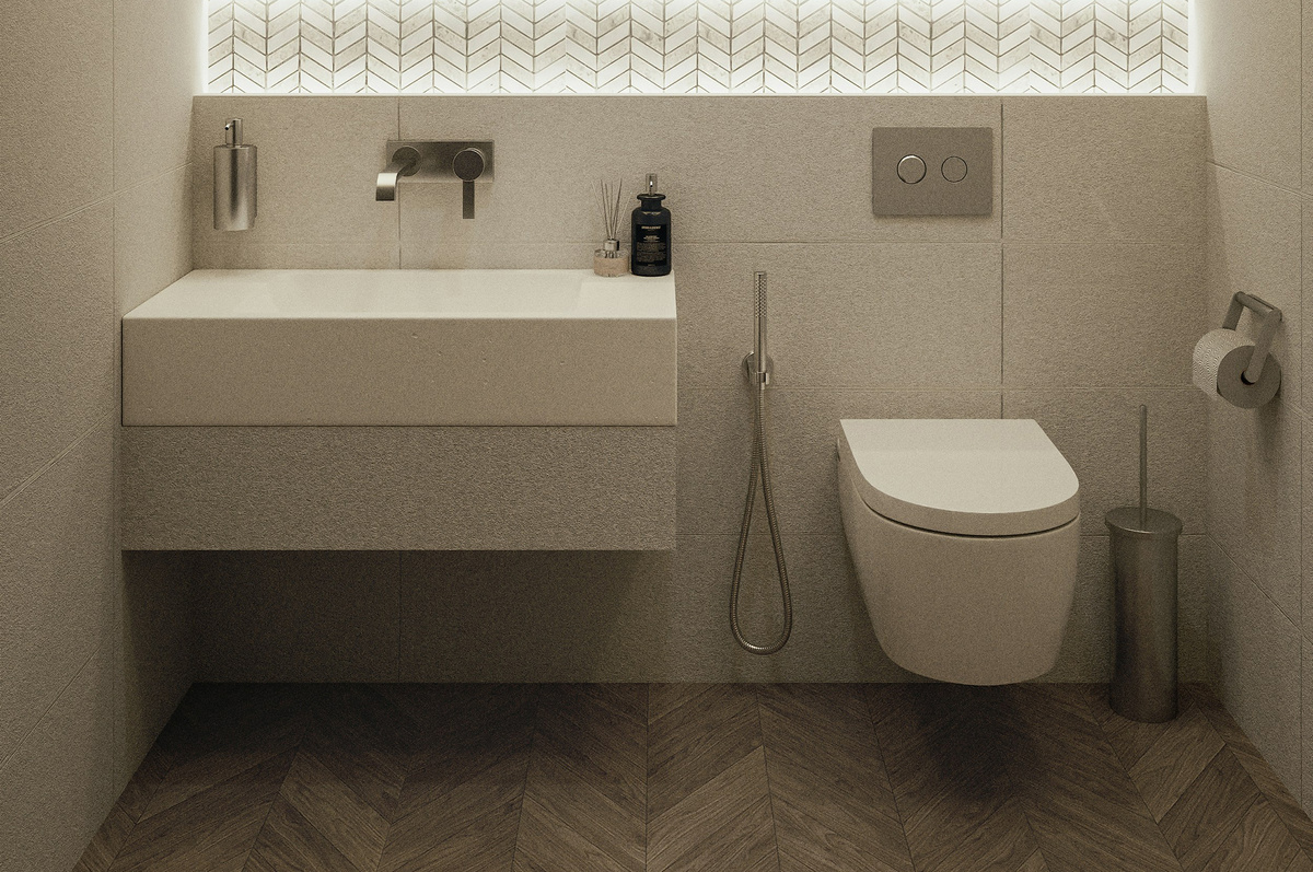 - Унитаз-биде: Установка крана под ободком унитаза позволяет контролировать струю воды с помощью кнопок или рычага встроенного бачка.