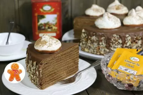Этот невероятный торт сочетает в себе тонкие медово-шоколадные коржи и великолепный трюфельный крем, состоящий из сливок, шоколада и ореховой пасты. В результате получается удивительно нежный и насыщенно шоколадный десерт. Предлагаем попробовать его приготовить!
