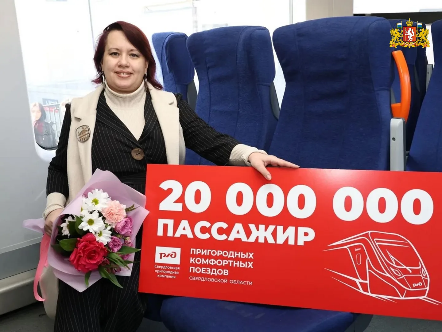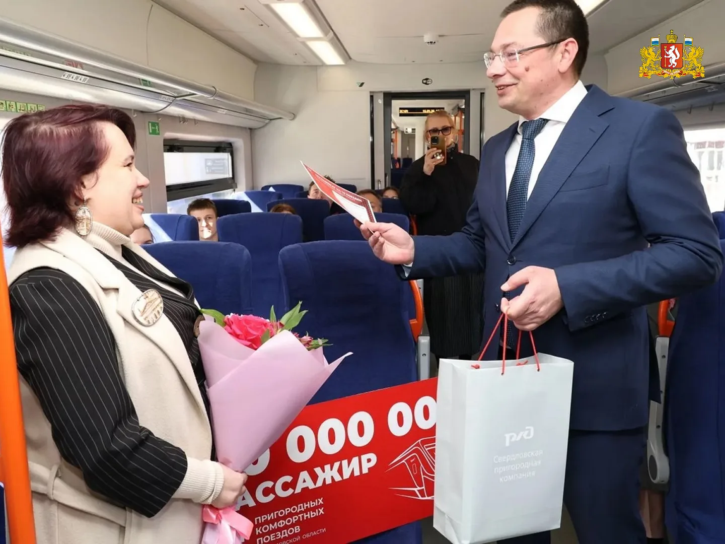 Пассажирке вручили сертификат на десять поездок и памятные сувениры.
