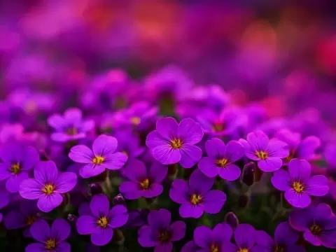Речь идёт об обриете — многолетнем растении, получившем название "фиолетовый дождь" за щедрость цветения. С высотой всего 10–15 сантиметров, эта красота способна заполнить участок яркими куртинами. В период пика цветения зелень исчезает под плотным ковром фиолетовых, розовых, красных и синих цветков.