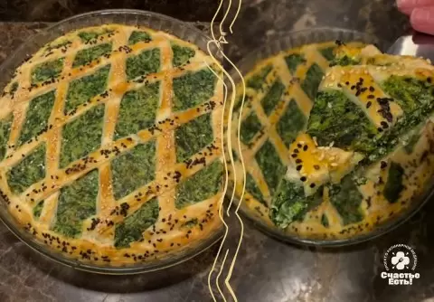 В начинку пирога часто добавляют цельные яйца — 7 или 8 штук аккуратно разбивают в углубления на поверхности шпината и рикотты, а поверх укрывают слоем теста.