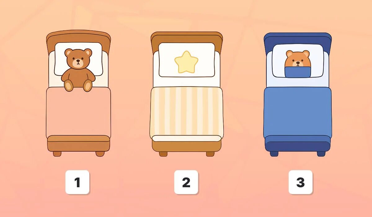 Посмотрите на три представленные кровати и выберите ту, которая вам наиболее нравится. Этот выбор не случайен — он откроет двери к пониманию ваших истинных ценностей и черт характера.